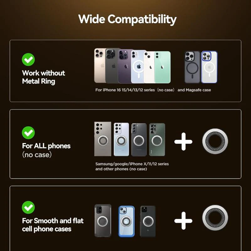 The MagHold is engineered with exceptional rotation capabilities, allowing you to effortlessly adjust your phone to the perfect angle. With 360-degree flexibility, you can easily switch between portrait and landscape modes or find any position that suits your needs. Whether you’re navigating, taking calls, or streaming, the smooth and sturdy rotation mechanism ensures precise adjustments without compromising stability. Enjoy seamless control and convenience, no matter where the road takes you.